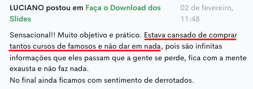 E quem gosta do produto, fica com vontade de avançar no consumo dos meus outros treinamentos e até mesmo contratação da minha assessoria em vendas online no futuro (essa é a “jogada”).